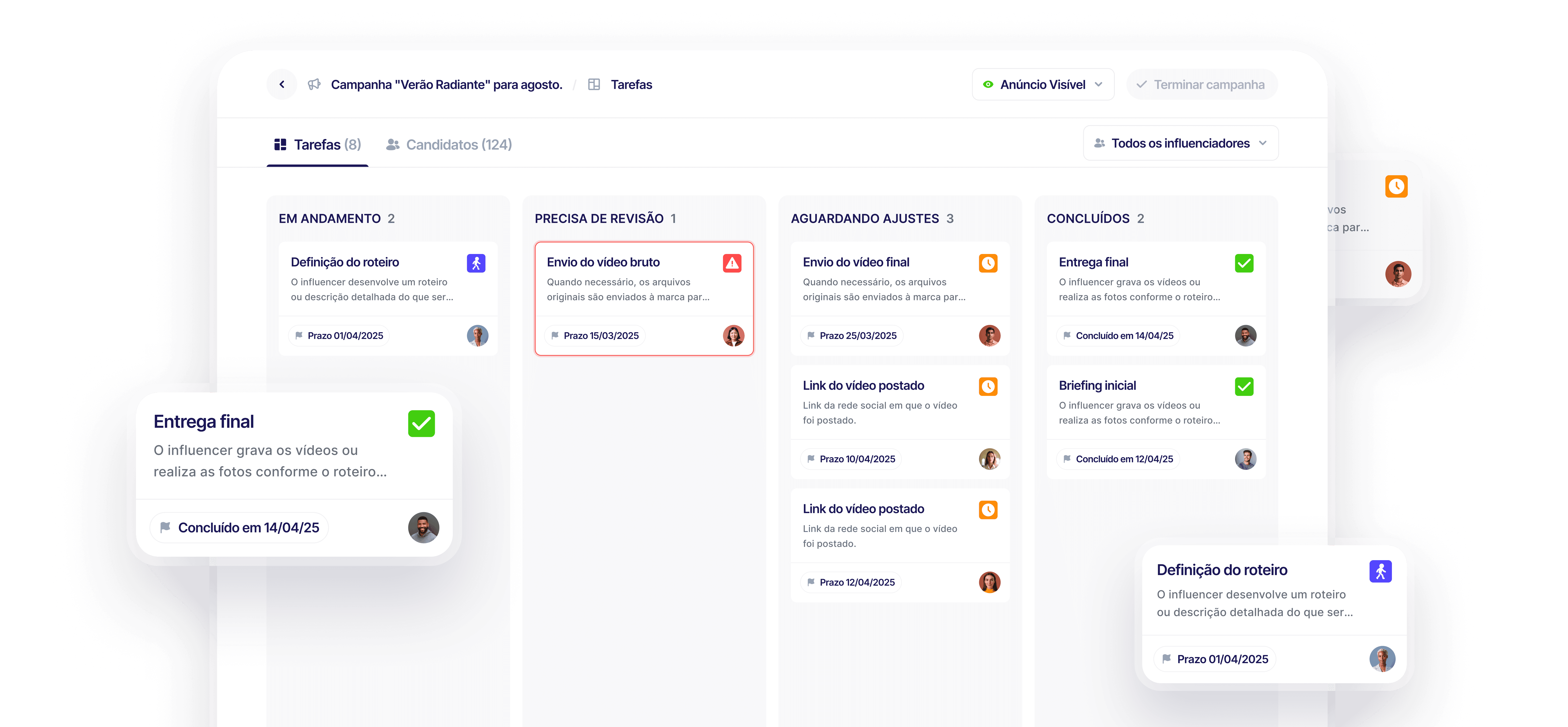 Gerencie seu portfólio de influenciadores e crie campanhas